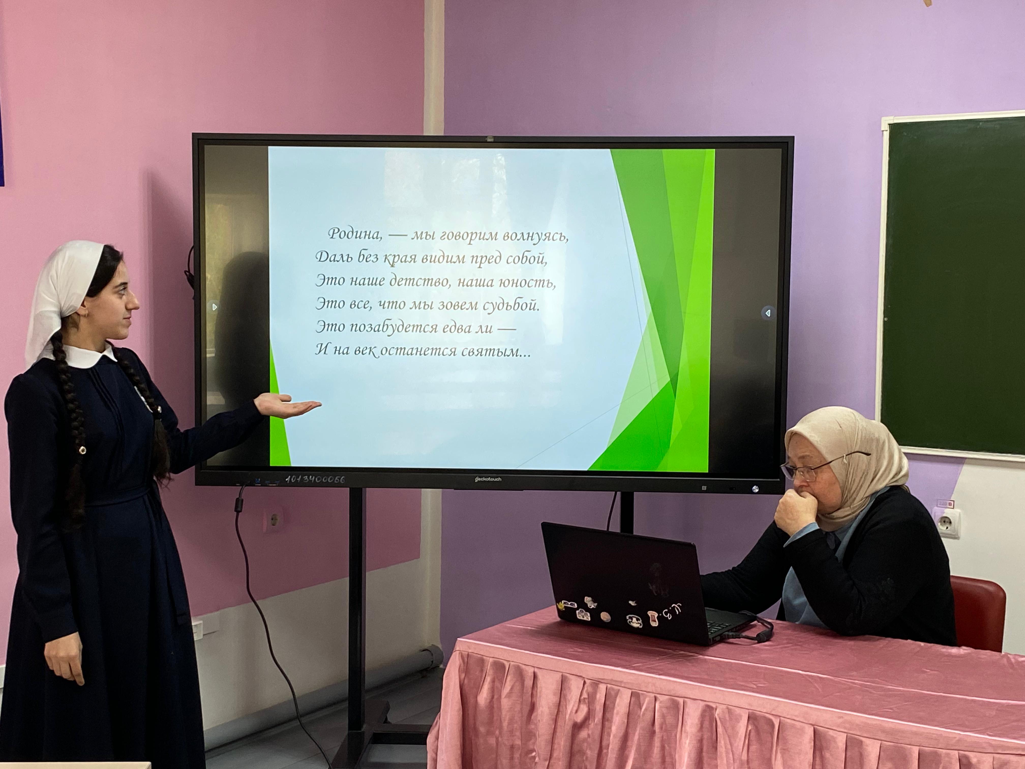Прошла еженедельная линейка, посвященная церемонии поднятия Государственных флагов Российской Федерации и Чеченской Республики.