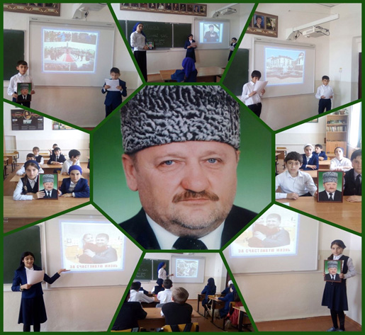 В честь Дня рождения Первого Президента ЧР, Героя России А-Х. Кадырова школа была оформлена на соответствующую тему, оформлена книжная выставка, под названием: «И это все о нем», «На пути истины и веры», классный руководитель 7Б класса провела классный час: «Он гордился своим народом». С целью духовно-нравственного воспитания подрастающего поколения, педагог-организатор по ДНВиР провел беседу с обучающимися 9-ых классов: «Жизнь и деятельность Первого Президента, Героя России Кадырова А-Х.».