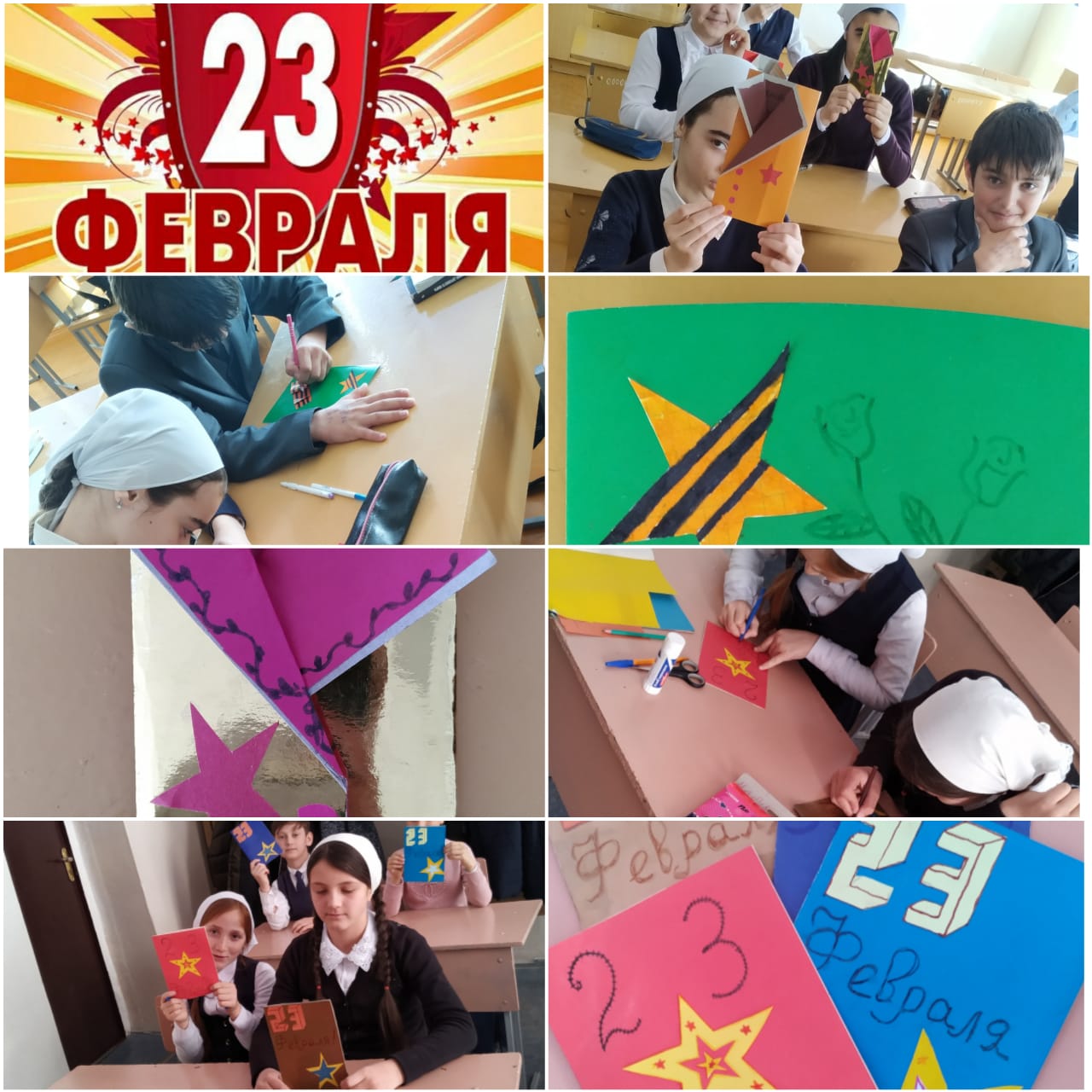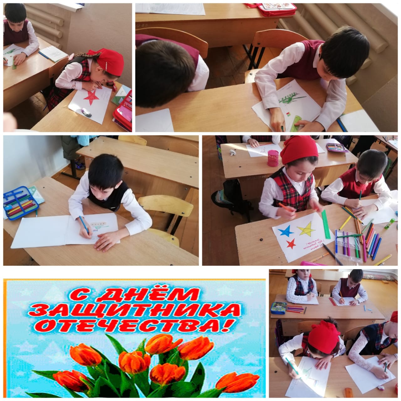 Это были различные конкурсы и соревнования, подготовка открыток и поздравительных рисунков.