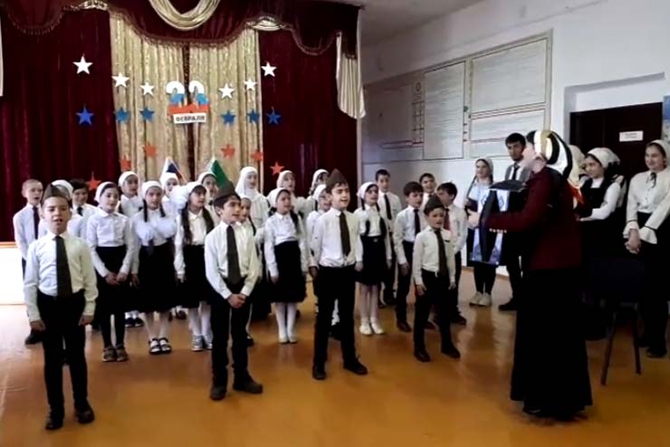 В адрес мужской половины человечества прозвучали поздрааления в стихах и в песнях от учащихся 9-11 классов.Далее хор "Дмисолька" и руководитель хора заслуженная артистка ЧР Белаева Аминат Арбиевна исполнили песни военных лет " Крейсер Аврора ", "Катюша", "Пограничники". Завершилось мероприятие поздравлениями от директора школы Исраиловой Равиды Хасановны. Она поздравила ребят с наступающим праздником, пожелала им всегда любить и защищать свою семью, свою Родину. Быть патриотами своей страны!