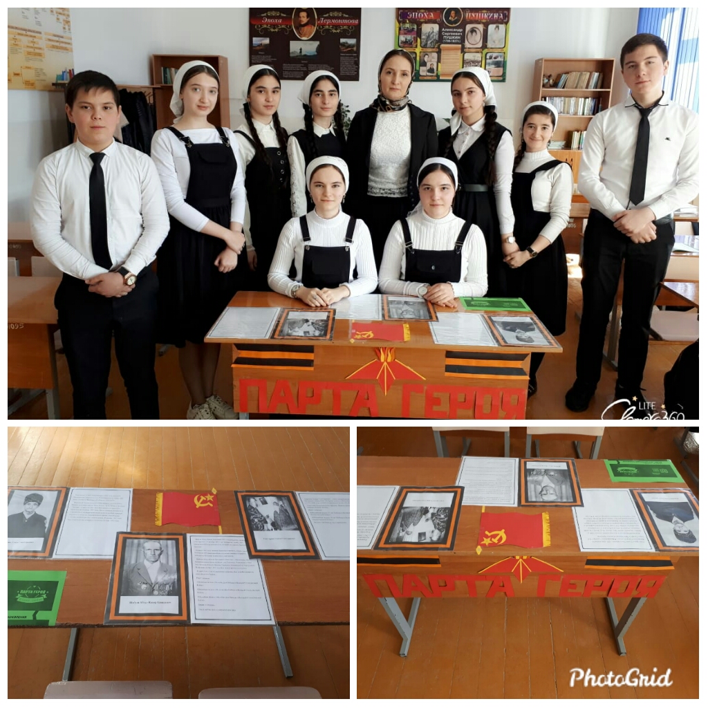 Парта Героя – ученическая парта с размещенной на ней информацией о заслуженных людях, о ветеранах Великой Отечественной Войны, размещена в 10 классе МБОУ «СОШ №1 с.п. Горагорское».