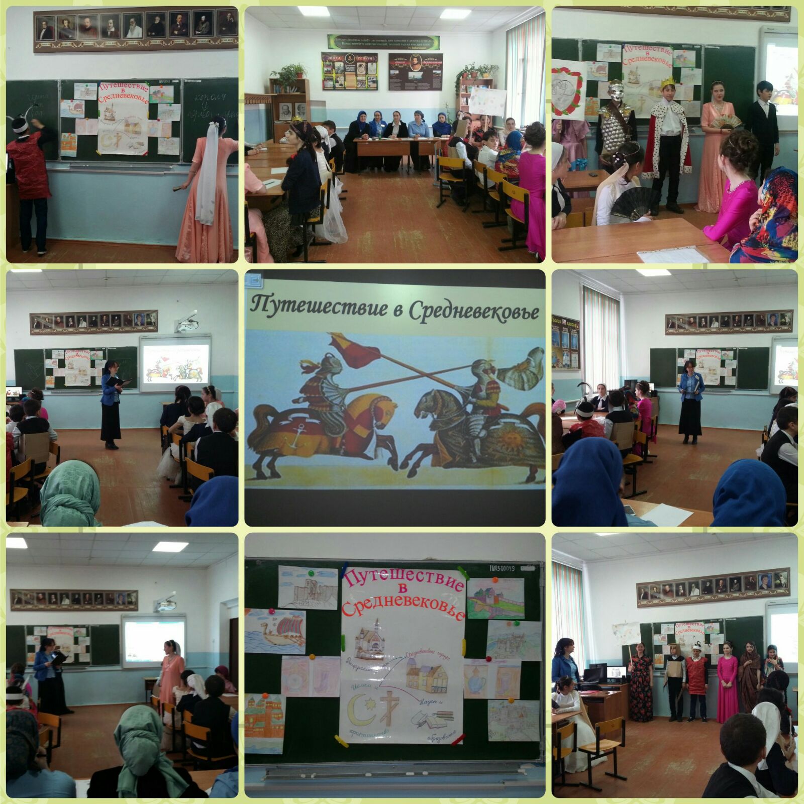 В рамках недели истории, ставшей ежегодной традицией нашей школы, учитель истории и обществознания Каташева Асет Зайндиевна провела с учащимися 6 "А" класса открытый урок "Путешествие в средневековье"