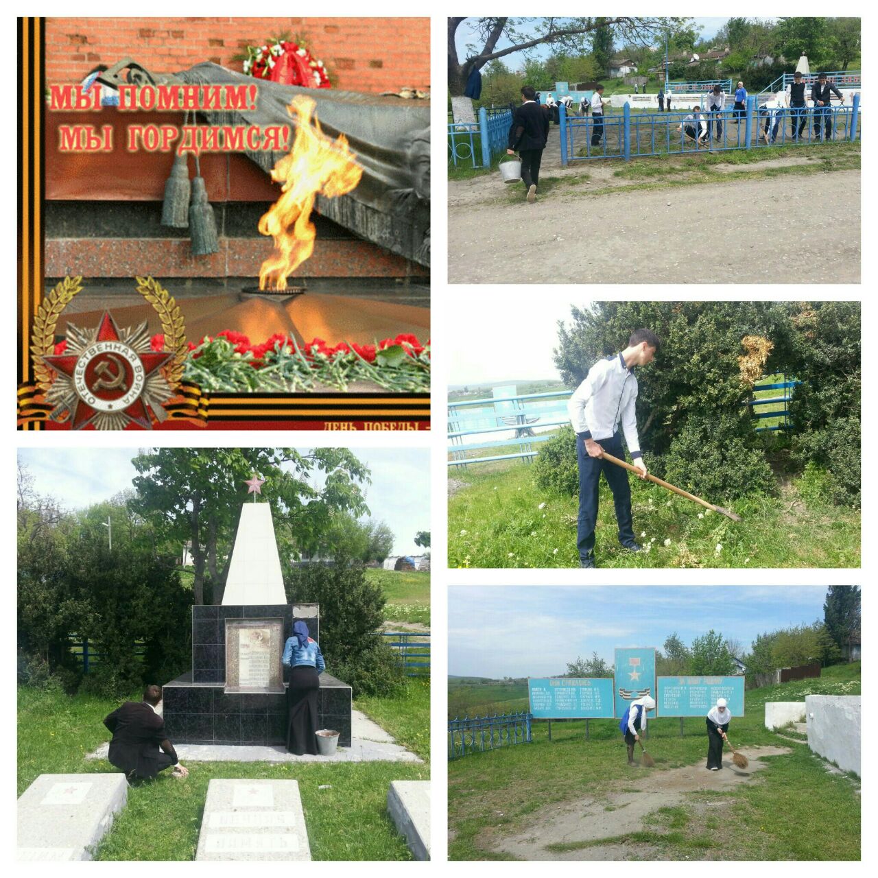 27.04.2016В преддверии празднования 71-й годовщины Победы в Великой Отечественной войне администрация школы и учащиеся 9-11 классов МБОУ «СОШ №1 с.п. Горагорское» провели субботник на территории памятника павшим героям и близлежащей территории.