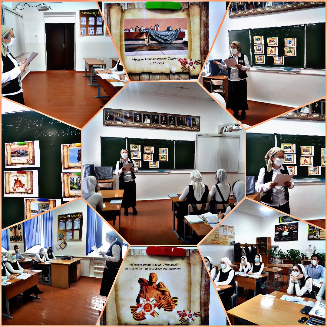 4 декабря учитель истории Каташева Асет Зайндиевна провела в 11 классе урок памяти, посвященный Дню Неизвестного солдата.