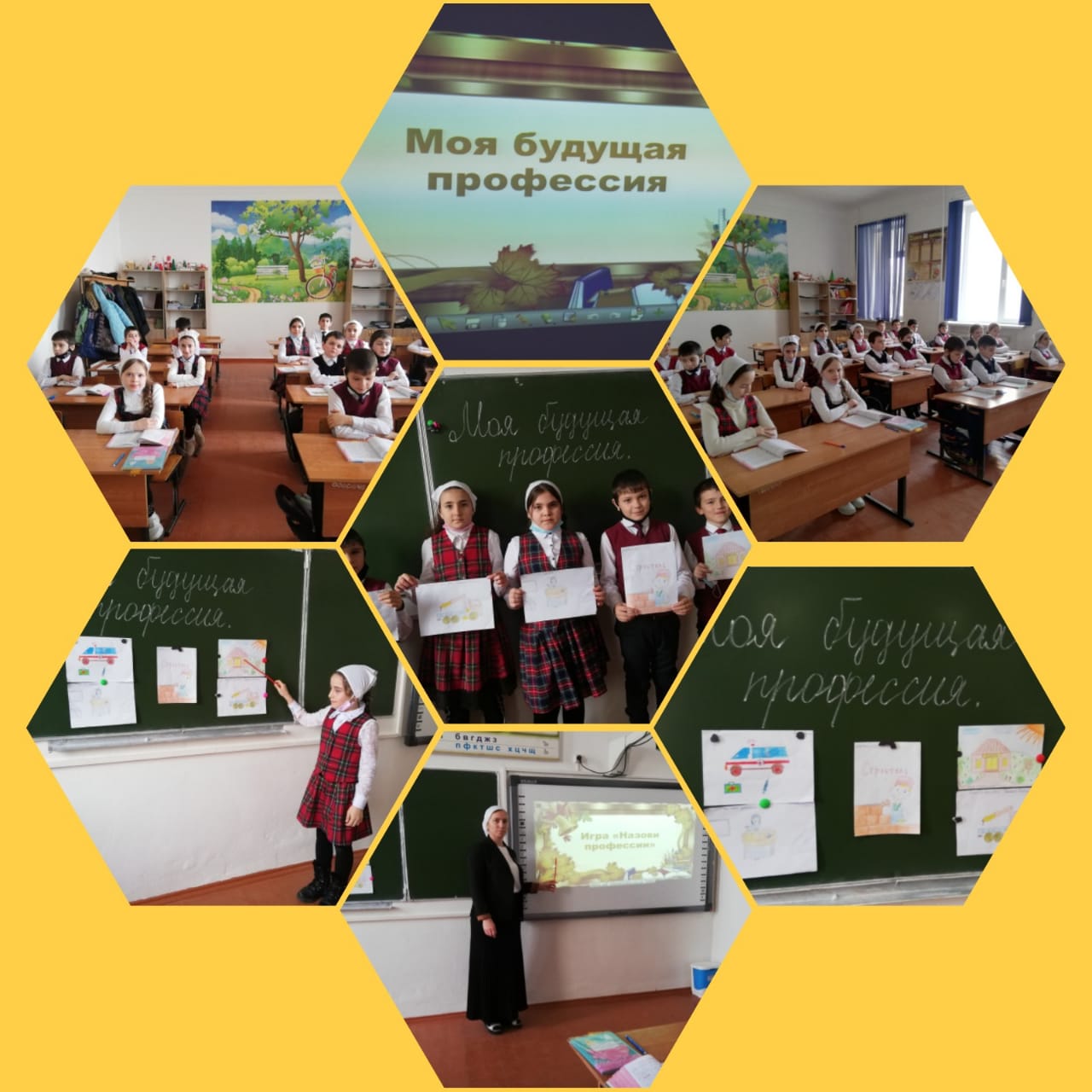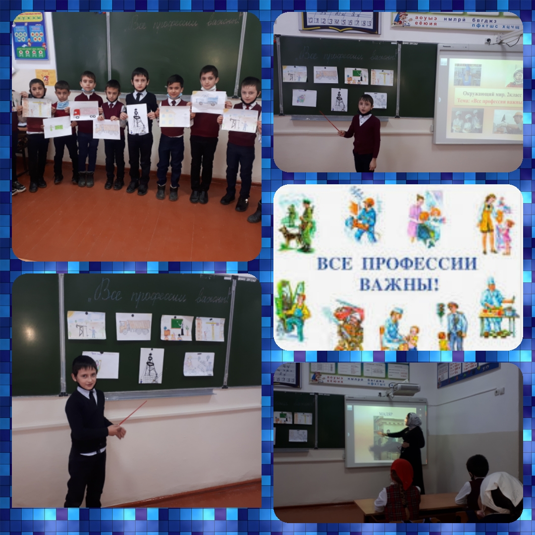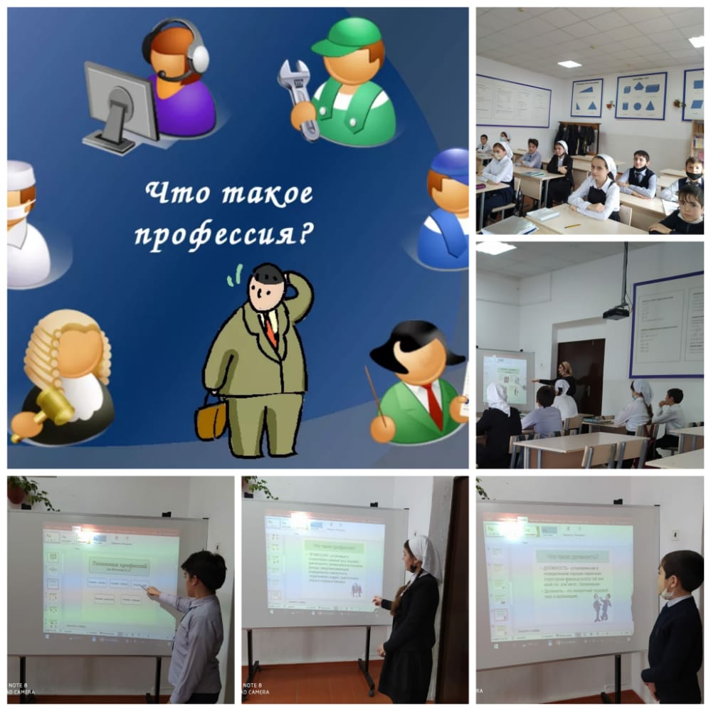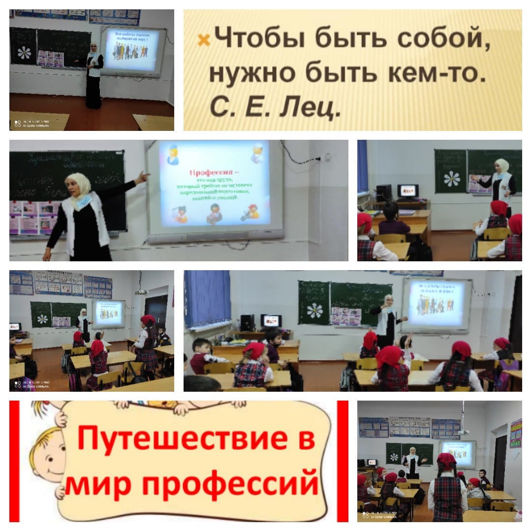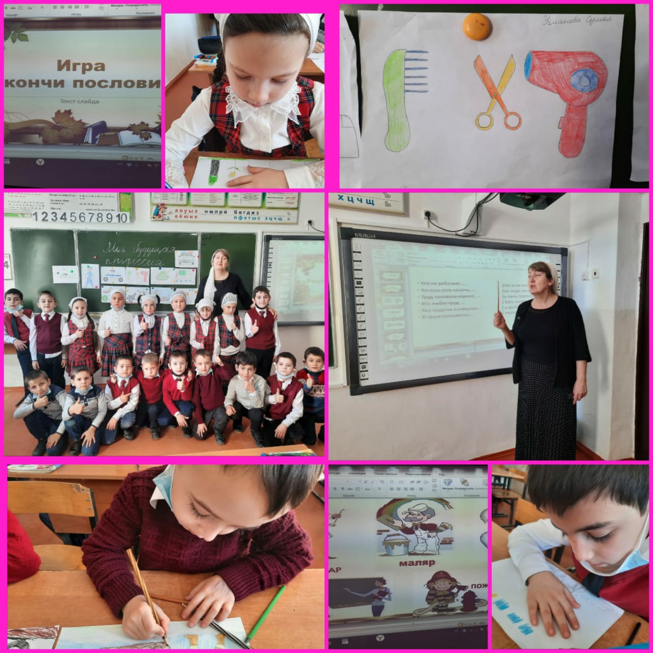 Учителя начального и среднего звена провели классные часы: " Мир профессий", "Что такое профессия?", "Все профессии важны", "Моя будущая профессия", "Путешествие в мир профессий" .Цель: выяснить уровень знаний учащихся о профессиях, расширить знания детей о мире профессий.Новое поколение совсем по другому оценивает жизнь настоящего. На их мнение по выбору профессий влияет все. Это и родители, друзья, престиж, мода.На классных часах обучающиеся рассказывали о профессиях своих родителей, бабушек и дедушек. Выяснилось, что многие бы хотели продолжить семейную династию.Классные часы сопровождались презентациями, слайдами, где ребята могли увидеть конкретно все возможности.
