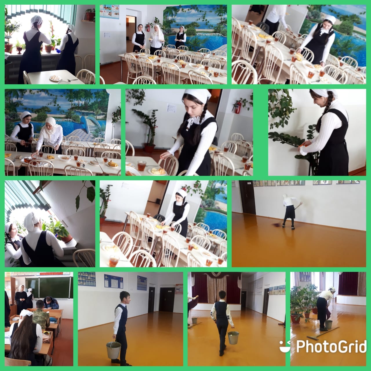 Цель: воспитывать милосердие, сострадание, взаимоуважение, уважение старших. Обучающиеся 10 класса накрыли на стол в школьной столовой, полили цветы. Также обучающиеся 7 "А" класса вызвались помочь техническому персоналу школы.