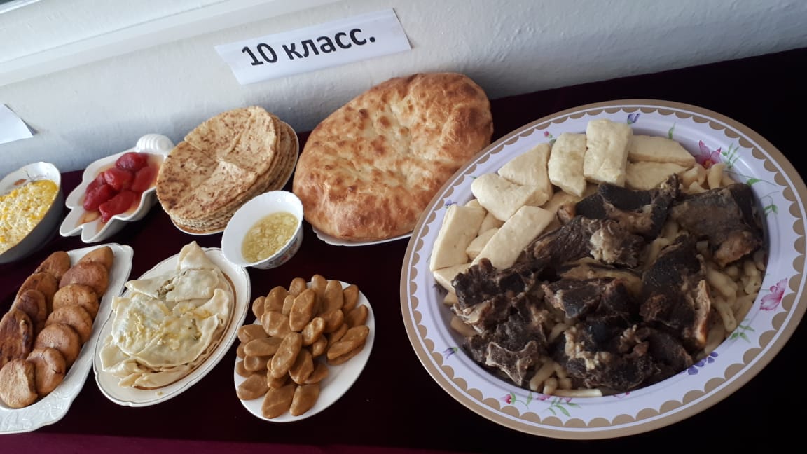 Конкурс состоял из загадок, вопросов о национальных блюдах. На кулинарном конкурсе можно было не только попробовать блюда, но и узнать рецепты понравившихся блюд. Приятный аромат витал в зале и не позволял даже самому сытому остаться равнодушным. По итогам конкурса призовое 1 место заняли девочки 10 класса, 2 место - 8 класс и 3 место разделили между обучающимися 9 и 11 классов. Также каждой участнице были вручены грамоты по следующим номинациям: