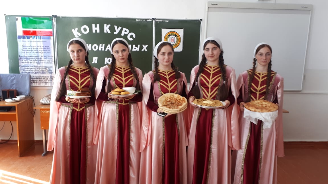 Цель: популяризация национальной кухни; сохранение и укрепление традиций приготовления и подачи национальных блюд. В школе сегодня было очень оживленно: вместе с привычным рюкзаком кто-то нес сумку, кто-то коробку, кто поднос с блюдом. Ребята попытались воспроизвести старинные национальные блюда, которые оценивались беспристрастным жюри: директором школы Исраиловой Р.Х., зам. директором по УВР Абаевой М.С., учителем родного языка Джабраиловой М.Т. по следующим критериям: внешний вид и эстетическое оформление блюда, самое старинное чеченское блюдо.