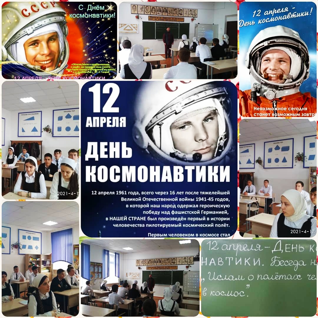 Показ видеоматериала "Юрий Гагарин" и беседа в 10 классе на тему: "Ислам о полётах человека в космос". Классный руководитель - Рахимова М.И.Педагог-организатор по ДНВиР - Хажмурзаев Х.Х.