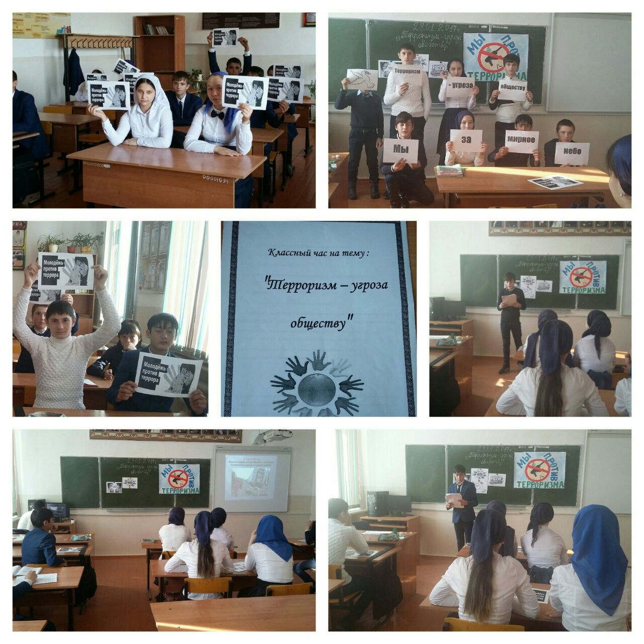В МБОУ "СОШ№1 с. п. Горагорское" с 23.01.2017г по 28.01.2017 года, прошли классные часы на тему "Мы против терроризма"