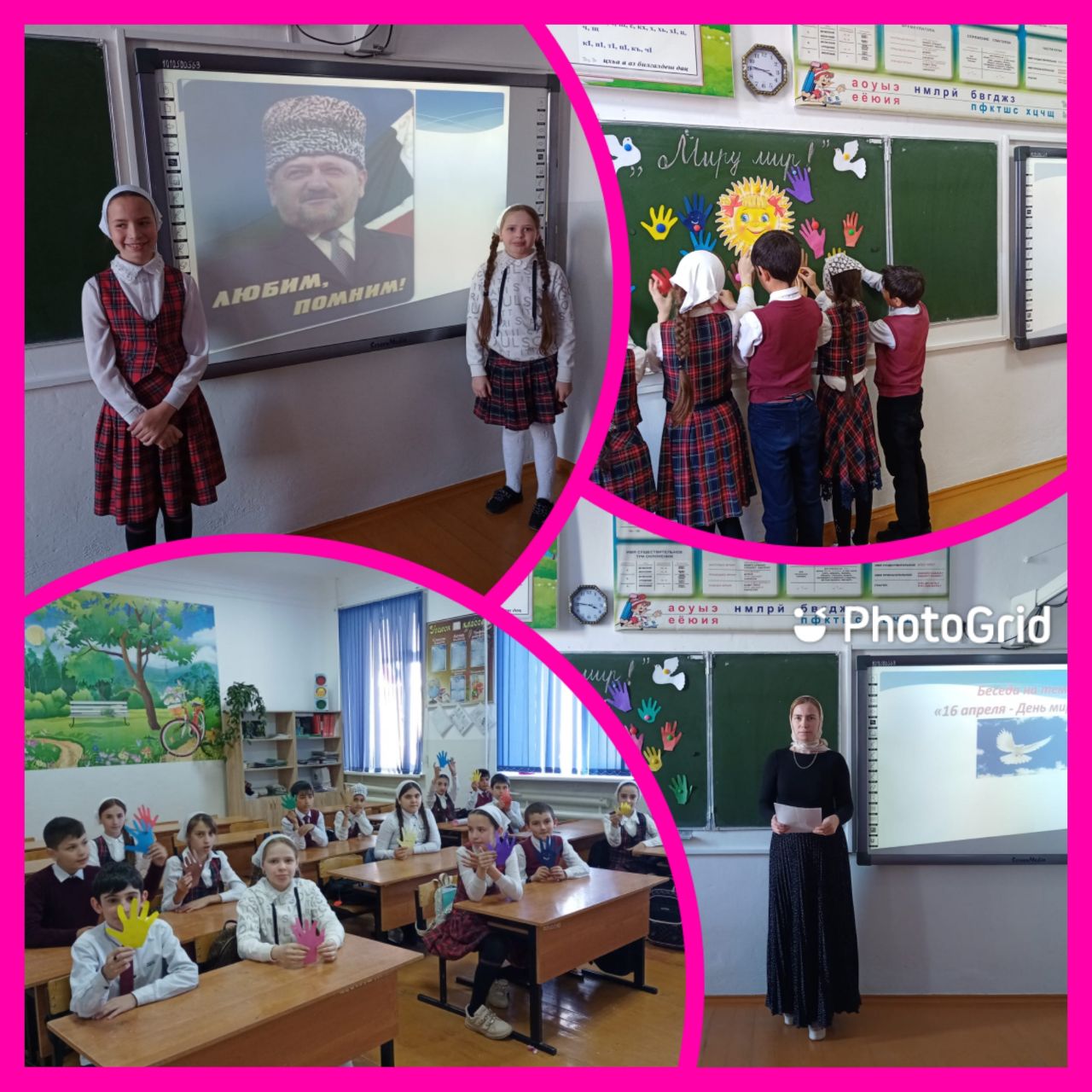 15.04.22г. в МБОУ "СОШ 1 с.п. Горагорское" проведены классные часы, посвящённые Дню мира в Чеченской Республике.