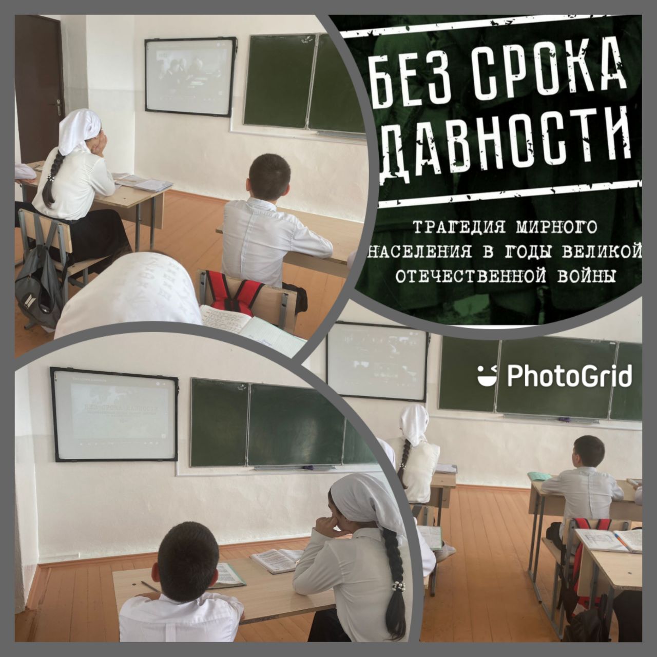 19.04.22г. в МБОУ "СОШ1 с. п. Горагорское" проведен День единых действий в память о геноциде советского народа нацистами и их пособниками в годы Великой Отечественной войны 1941-1945. Классными руководителями и обучающимися 5-8 классов, был просмотрен ролик "Без срока давности".