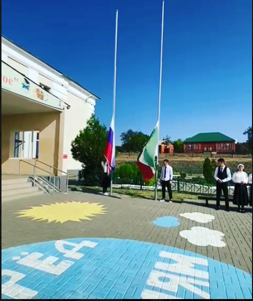 12.09.2022В рамках реализации Всероссийского проекта "Разговоры о важном" 12.09.2022г. в МБОУ "СОШ №1 с.п. Горагорское" проведена церемония поднятия государственных флагов Российской Федерации и Чеченской Республики.