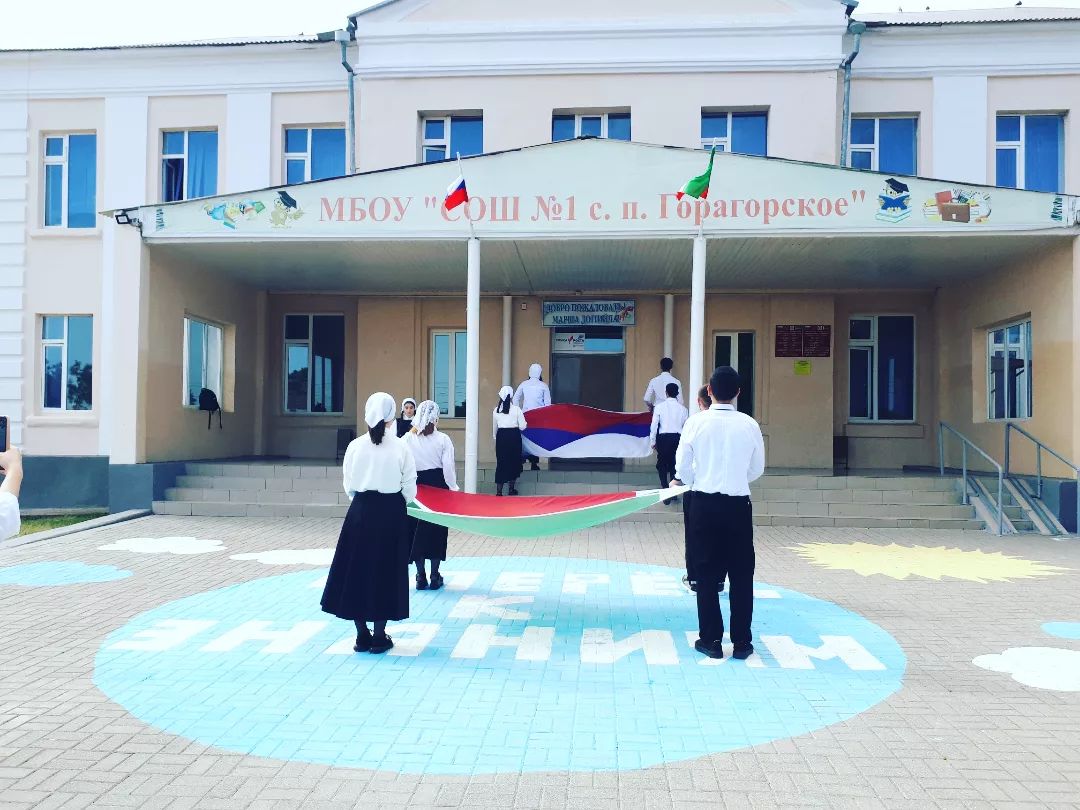 В МБОУ "СОШ №1 с. п. Горагорское" проведена линейка, посвященная спуску государственных флагов Российской Федерации и Чеченской Республики.