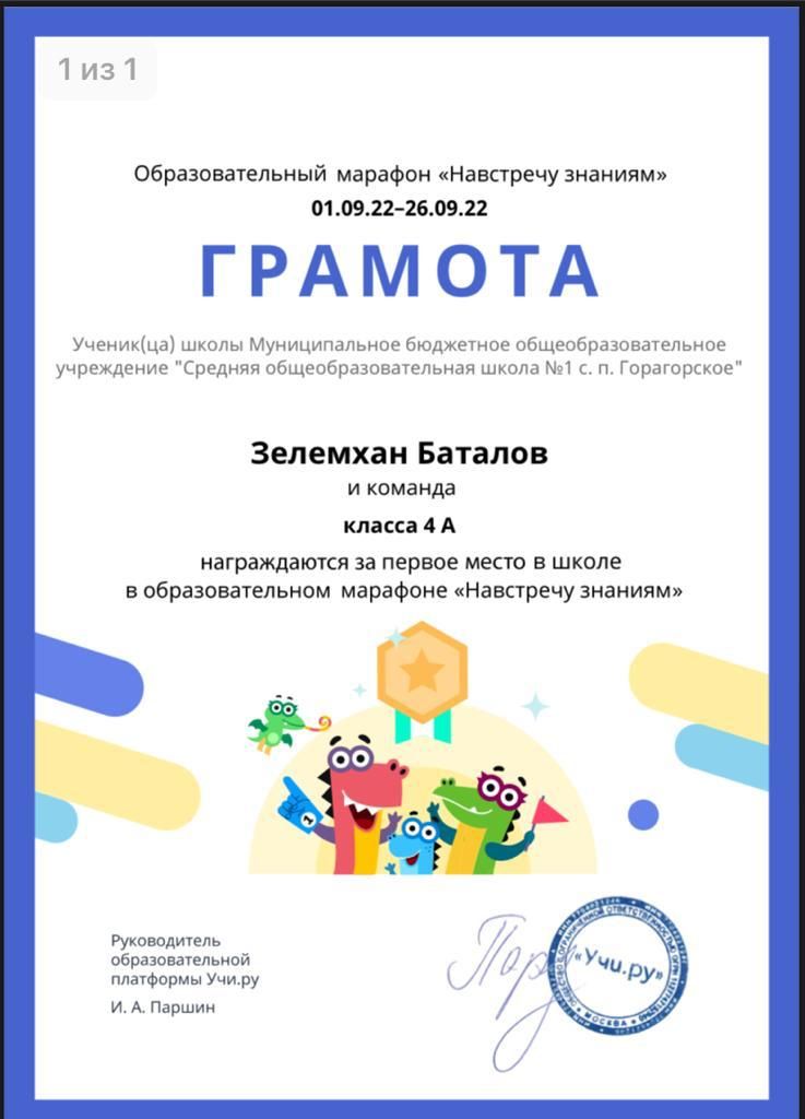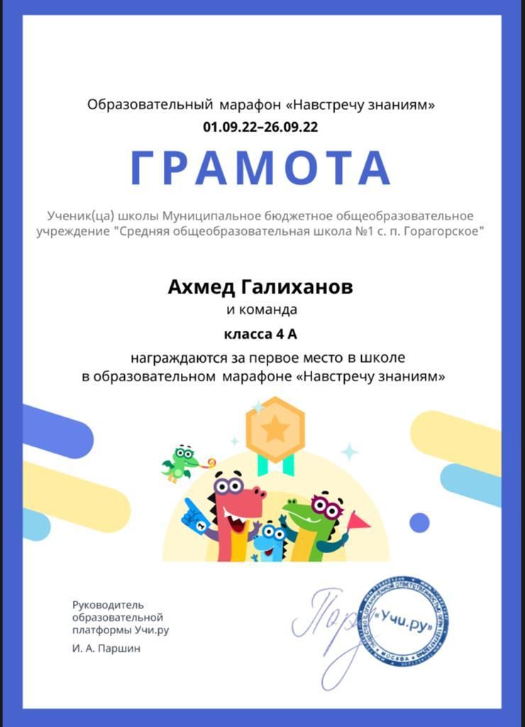 Достижения на платформе Учи.ру