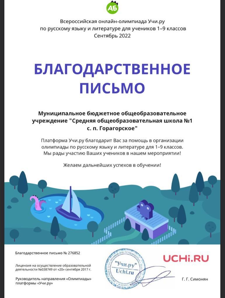 Муниципальное бюджетное общеобразовательное учреждение "Средняя общеобразовательная школа №1 с. п. Горагорское"
