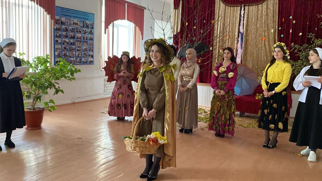 - номинация "Мисс Обаяние" присвоена обучающейся 9 класса, Джамалдиевой Аймани, а "Мисс Осень" стала обучающаяся 7Б класса, Цайсаева Хава.
