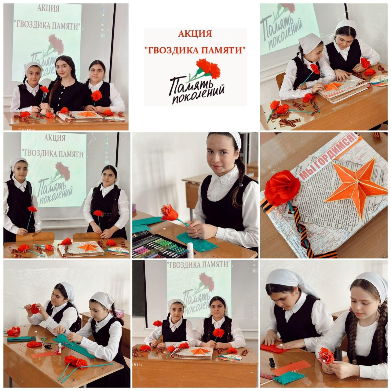 Цель: воспитание патриотизма и гражданской позиции у подрастающего поколения, воспитание бережного отношения к исторической памяти и людям старшего поколения. Гвоздика - это символ благодарности и мужества, цветок солдата-победителя и символ живой связи поколений. Педагог организатор вместе с обучающимися изготовили гвоздики в память о тех, кто сражался за Родину против фашистских оккупантов в годы Великой Отечественной войны, и тех, кто ковал победу в тылу.