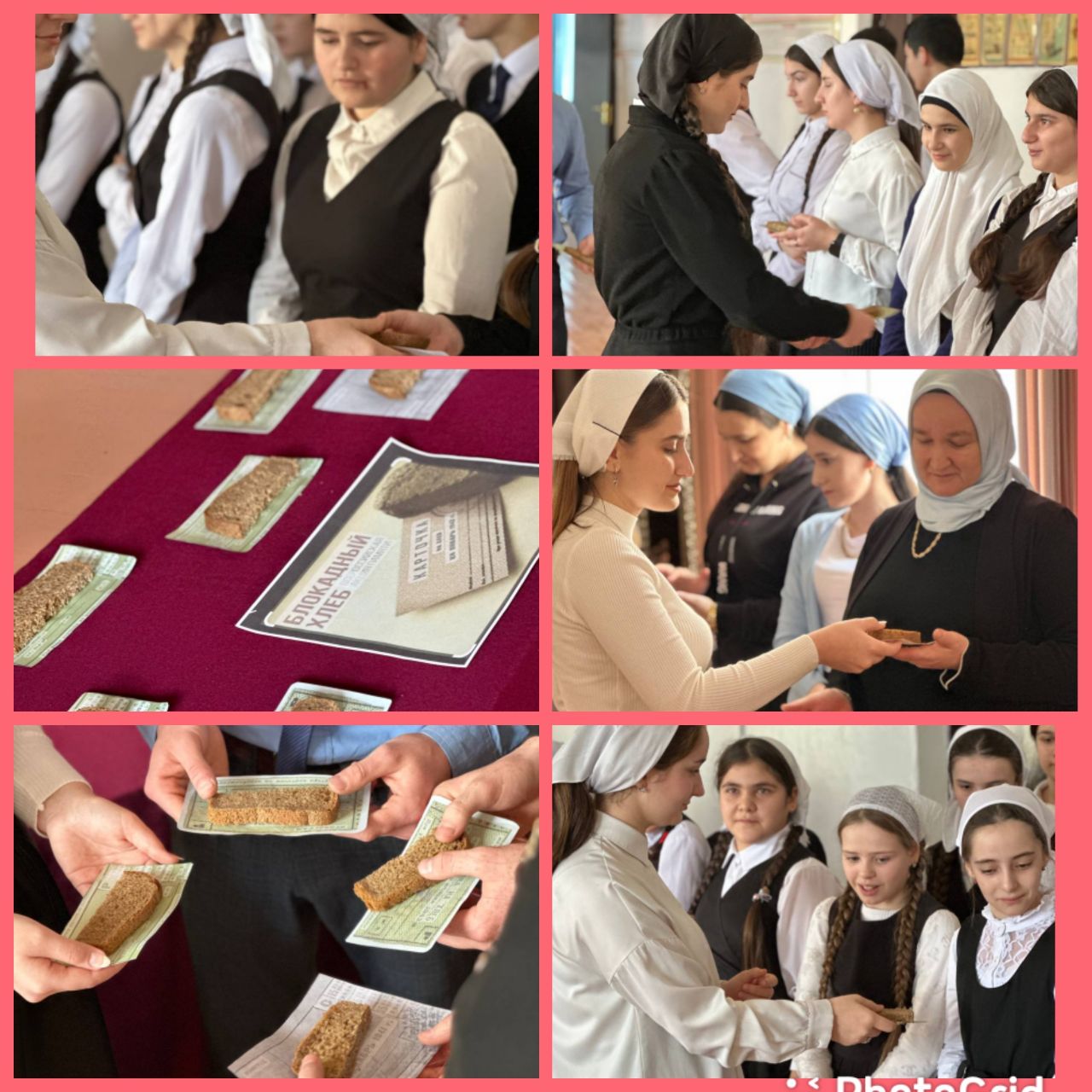 Эта акция призвана напомнить о мужестве жителей Ленинграда, переживших беспрецедентную блокаду миллионного города вражескими захватчиками, почтить память мирных жителей Ленинграда, которые, будучи окруженными врагом и отрезанными от остального мира, более двух лет боролись за свои жизни и жизни родных. Организаторы акции передали как символ памяти 125 граммов черного хлеба присутствующим учащимся, а также раздали информационные листовки о прорыве блокады. Затем ведущие рассказали ребятам о тяжелых испытаниях, выпавших на долю жителей осажденного Ленинграда: о голоде, холоде, о нормах хлеба. Ребята, затаив дыхание, слушали рассказ о блокадном хлебе, о стойкости ленинградцев. В заключении акции выпускник 11 класса Татаев Исмаил прочитал стихотворение "Блокадный хлеб".