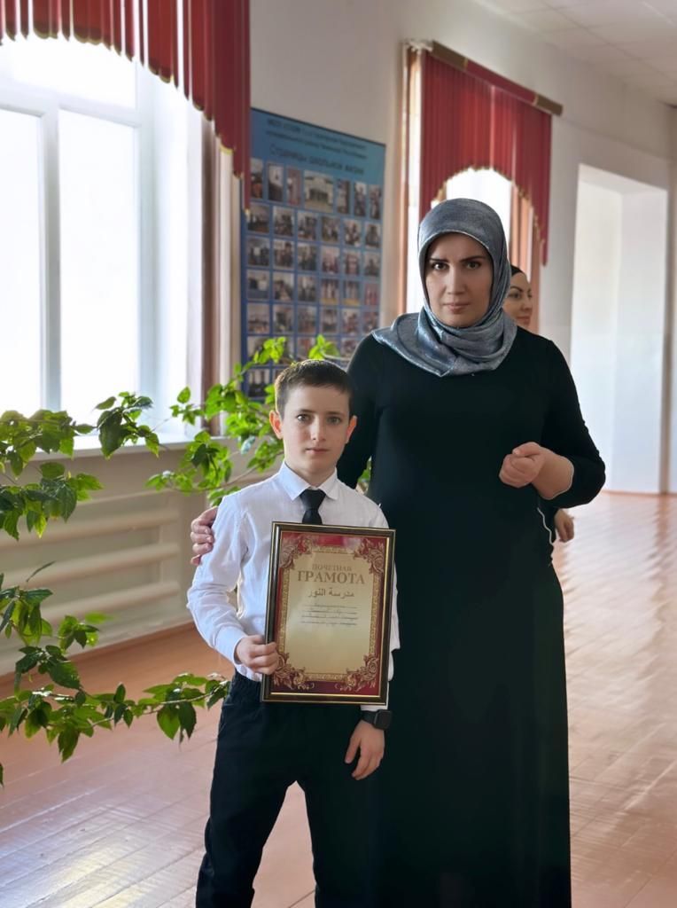 Обучающийся 7"А" класса Басханов Абу был награжден грамотой медресе "Нур", за 2 место в конкурсе на знание 30 джуза наизусть.