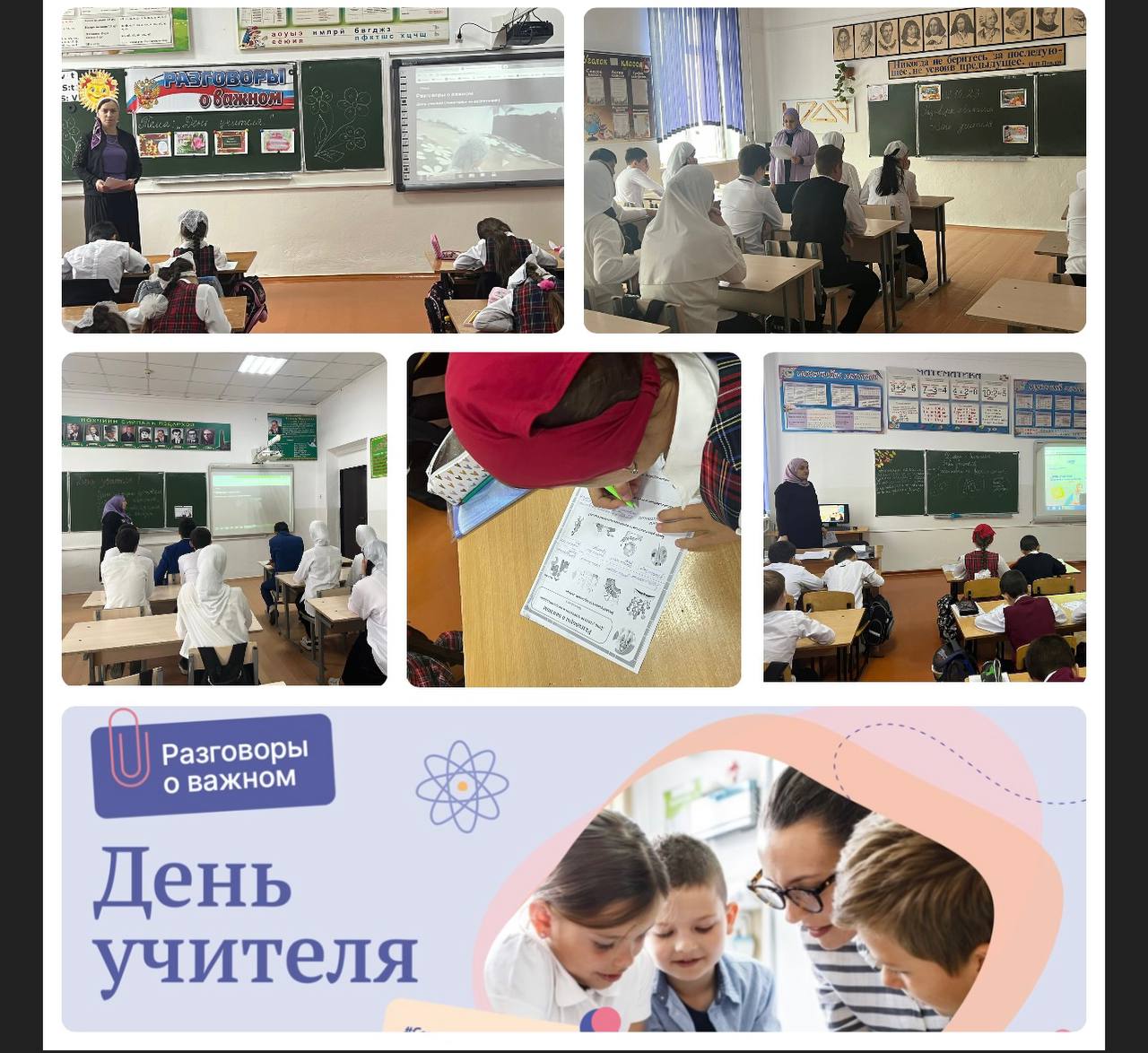 02.10.2023Сегодня, 2 октября 2023г., во всех образовательных организациях Чеченской Республики прошел традиционный «Разговор о важном». Сегодняшняя тема классного часа «День учителя».