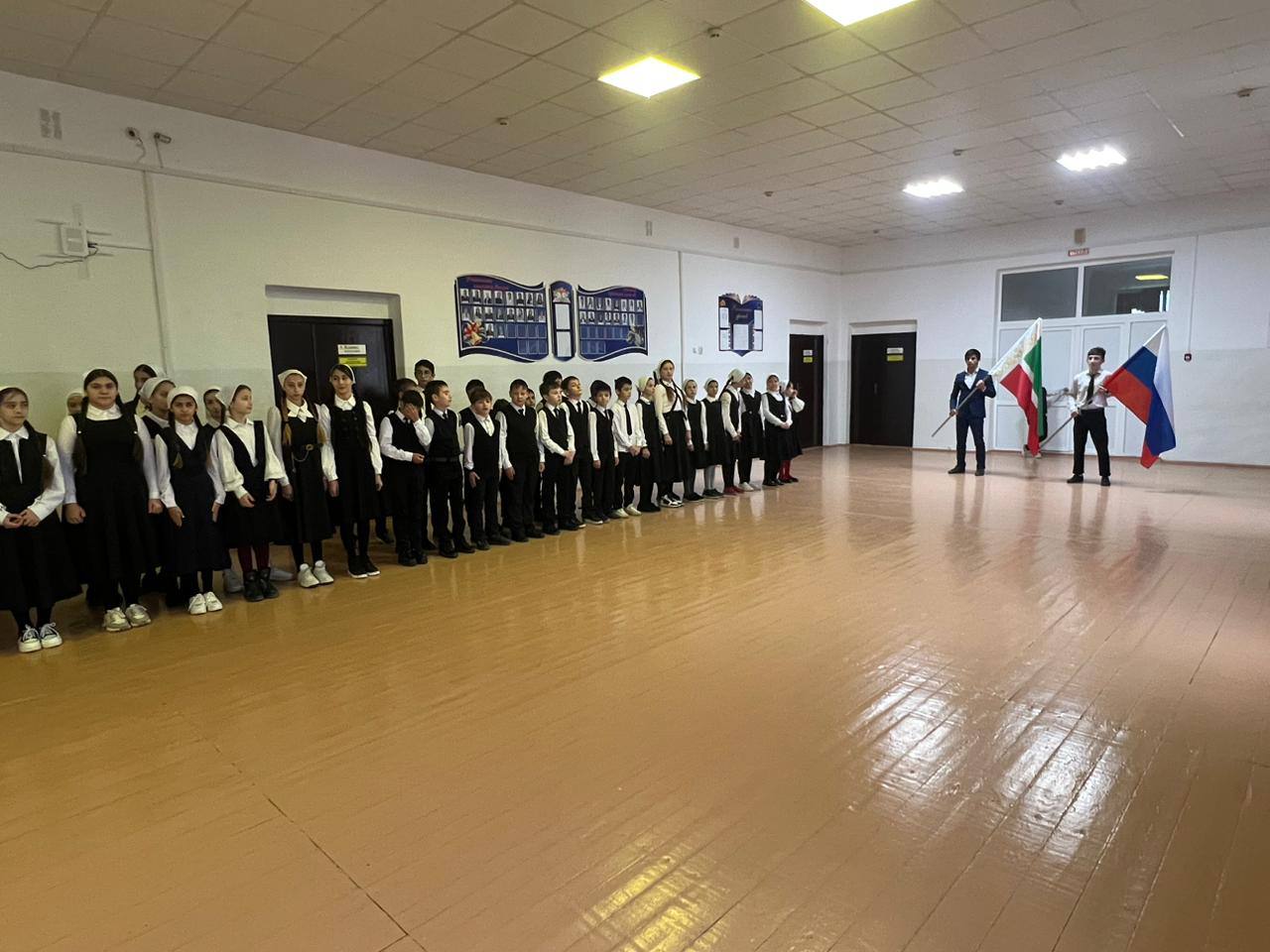 В нашей школе прошла церемония установки флагов Российской Федерации и Чеченской Республики.