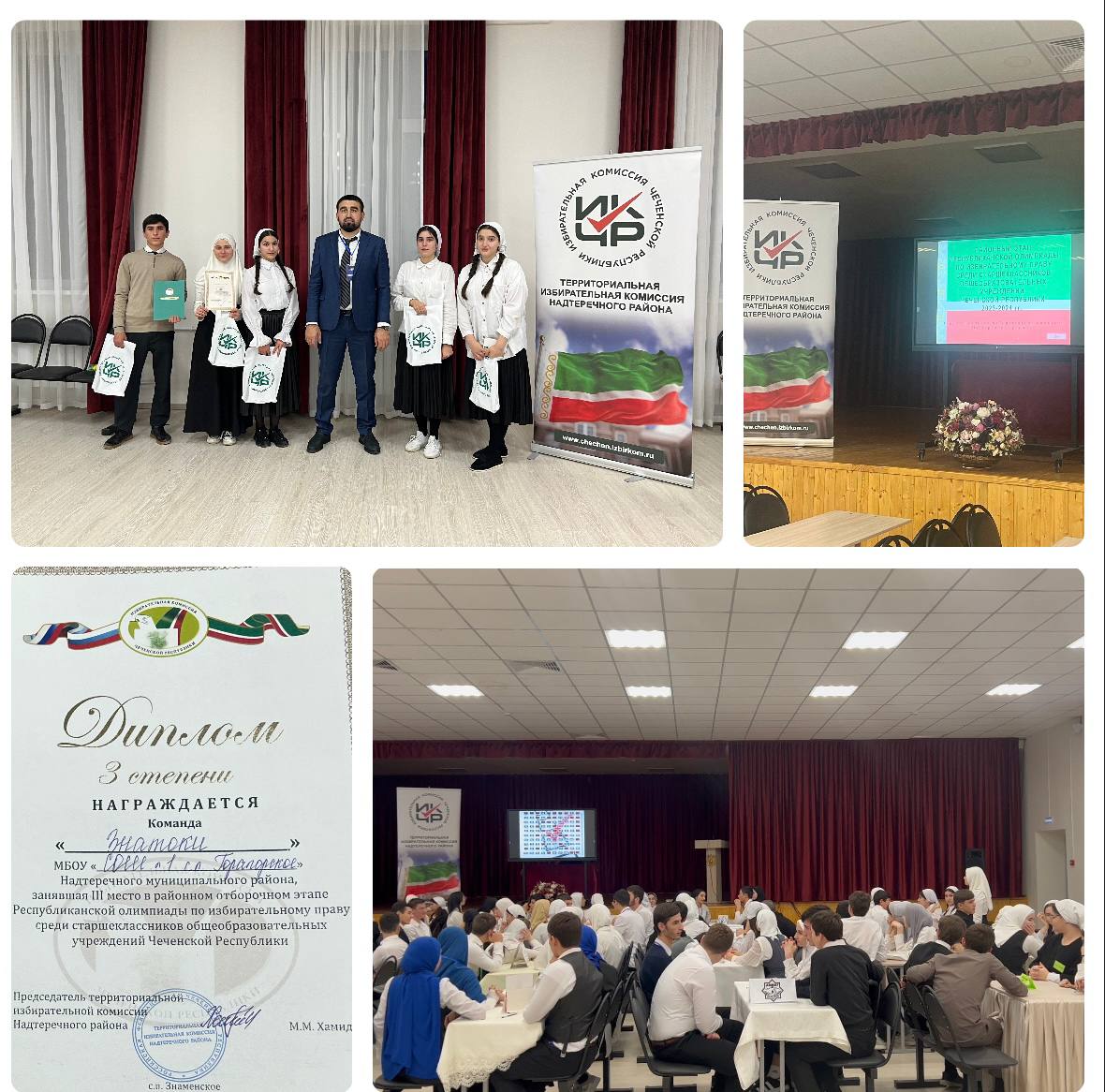 Районный этап олимпиады по Избирательному праву среди старшеклассников ОО прошёл на базе Гимназии №10 Надтеречного района. По итогам олимпиады команда «Знатоки» МБОУ «СОШ №1 с.п. Горагорское» заняла 3 место (29 баллов).