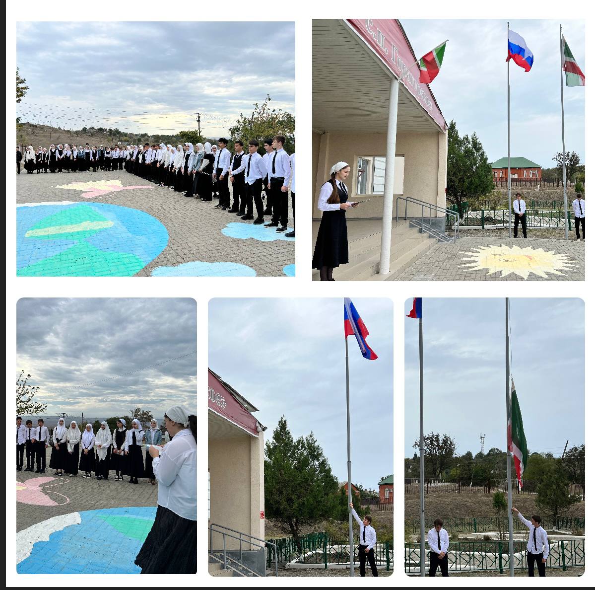 Рабочая неделя в МБОУ "СОШ №1 с.п. Горагорское" началась традиционно с поднятия флагов РФ и ЧР