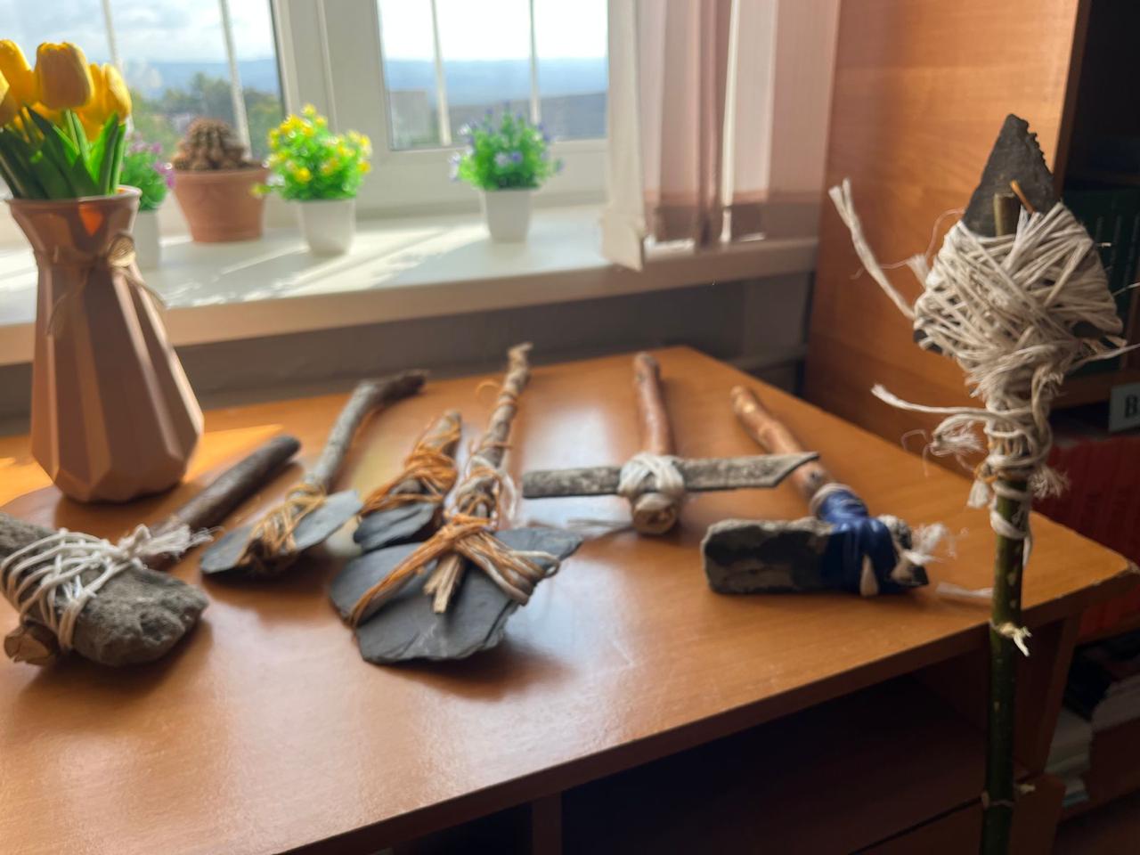 Ученики 5 "Б" класса воссоздали орудия труда древнейших людей.
