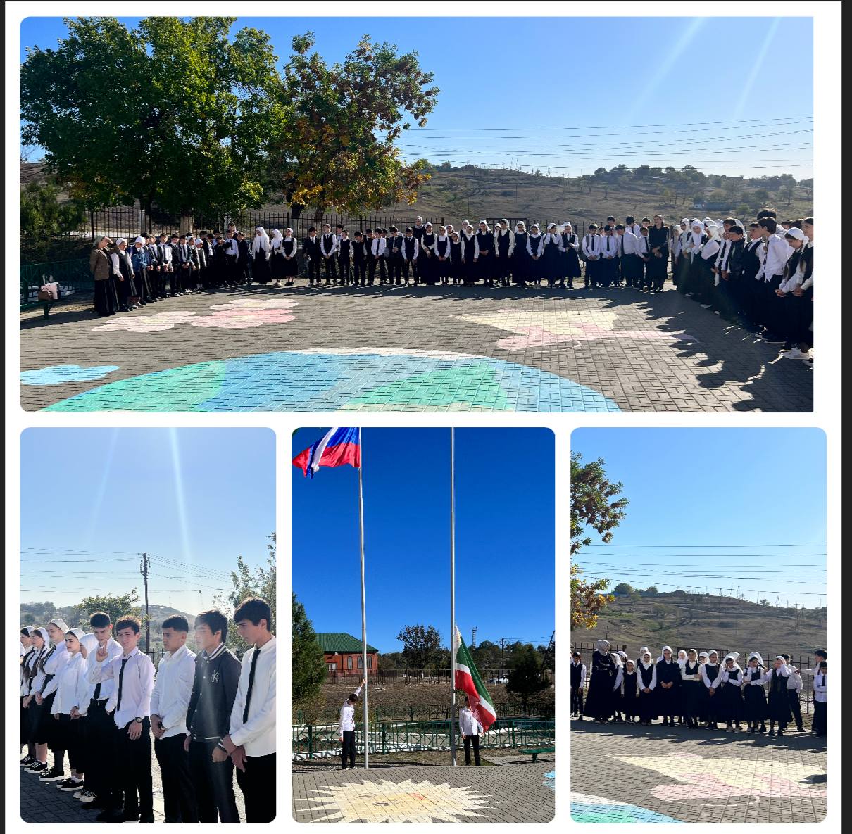 Рабочая неделя в нашей школе началась традиционно с поднятия флагов РФ и ЧР