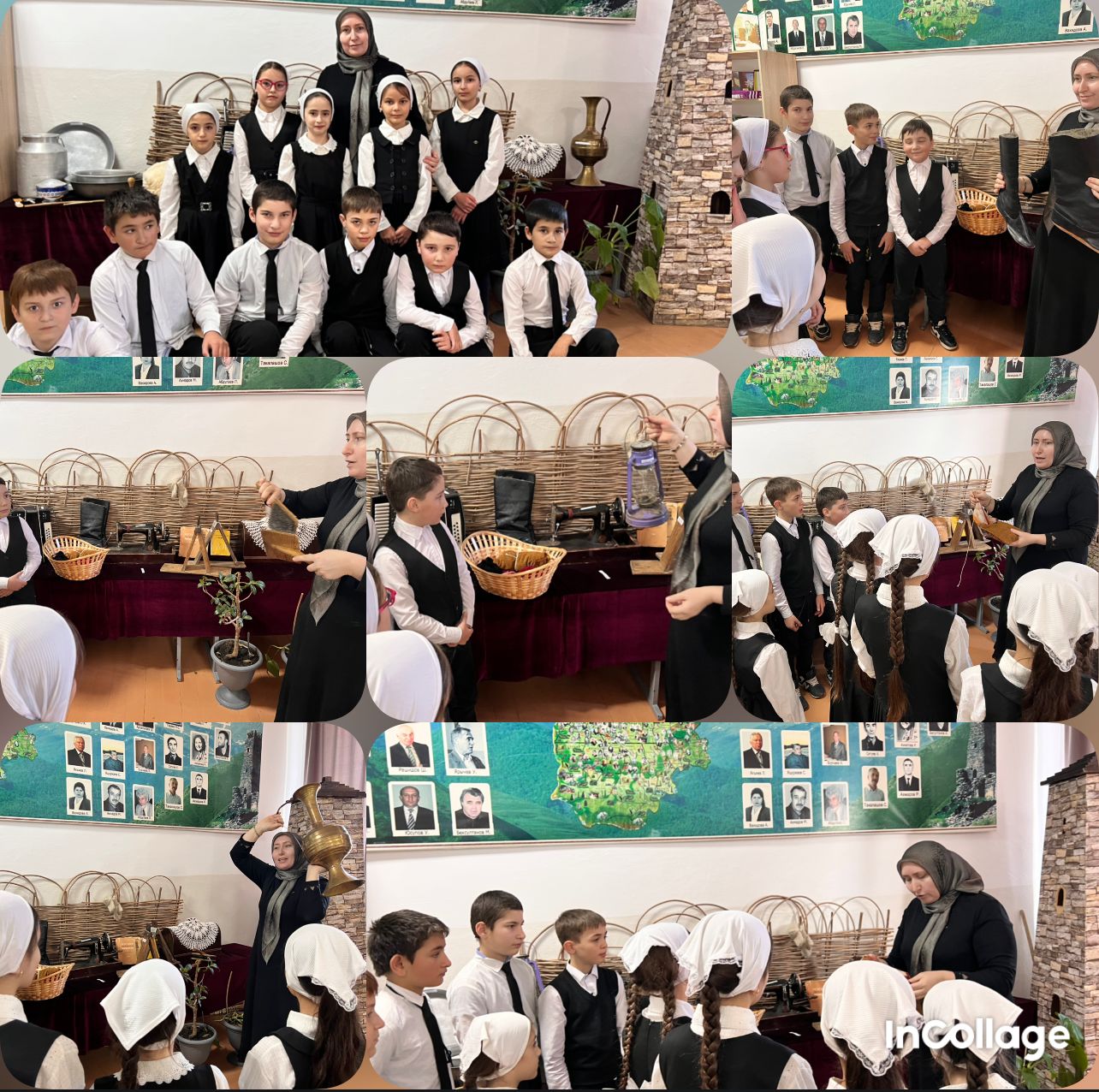 Руководитель музея Джабраилова М. Т. провела познавательную экскурсию, из которой ученики узнали много интересного о создании школьного музея, о наиболее интересных экспозициях и экспонатах их школьного музея.