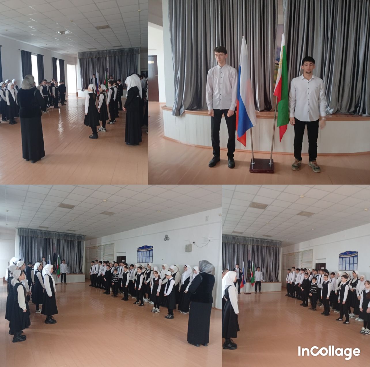 Перед началом занятий в МБОУ «СОШ№1 с.п. Горагорское», прошла еженедельная линейка, посвященная церемонии установки Государственных флагов Российской Федерации и Чеченской Республики под Государственные гимны.