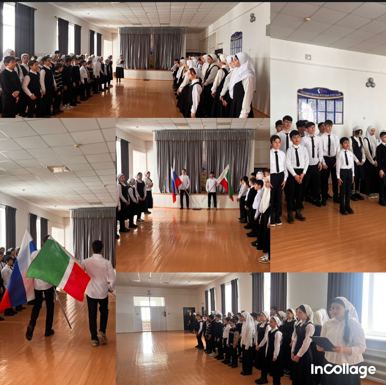 Прошла еженедельная линейка, посвященная церемонии установки Государственных флагов Российской Федерации и Чеченской Республики