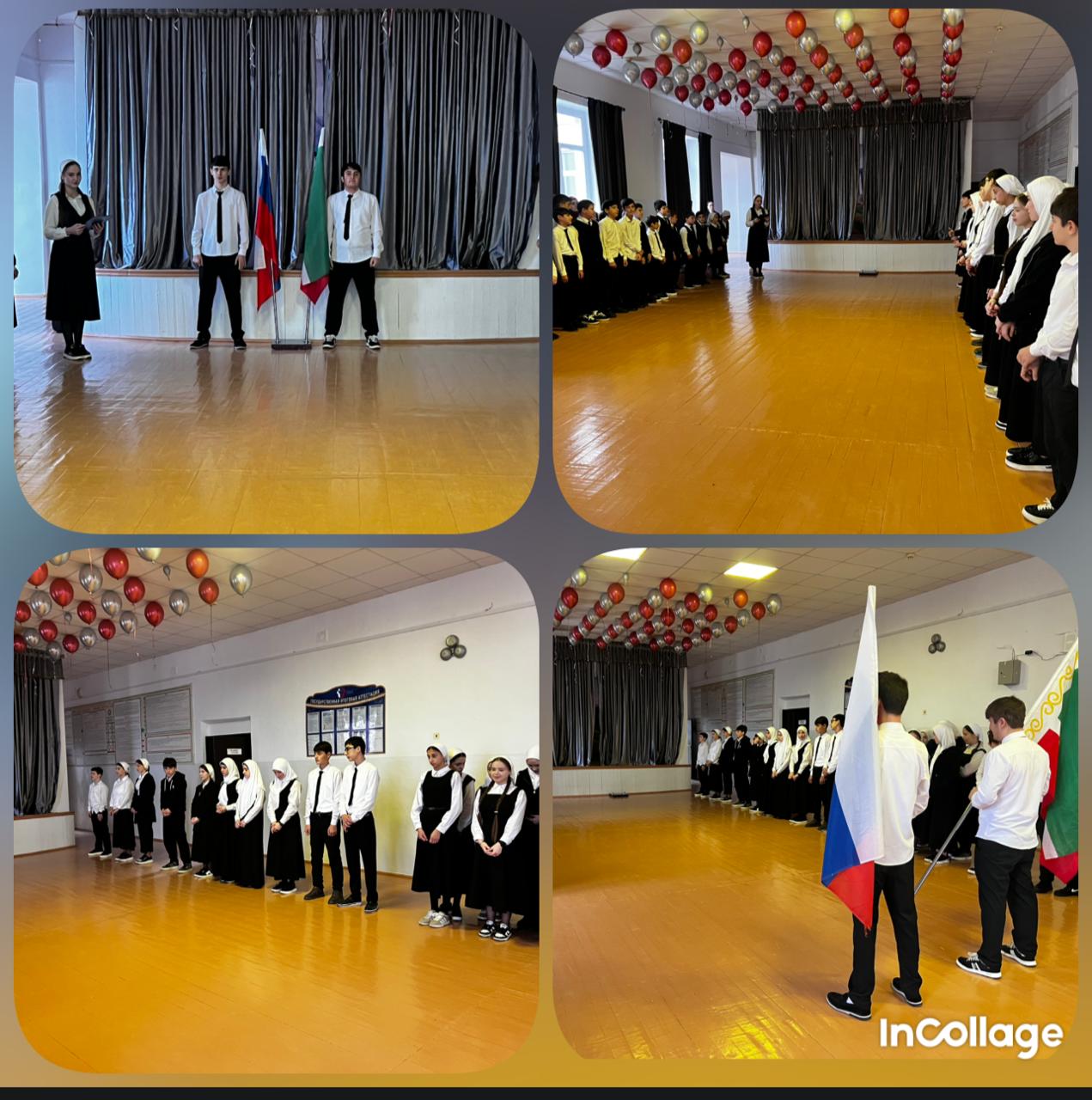 Утро понедельника в нашей школе традиционно началось с установки флагов РФ и ЧР под Гимны.