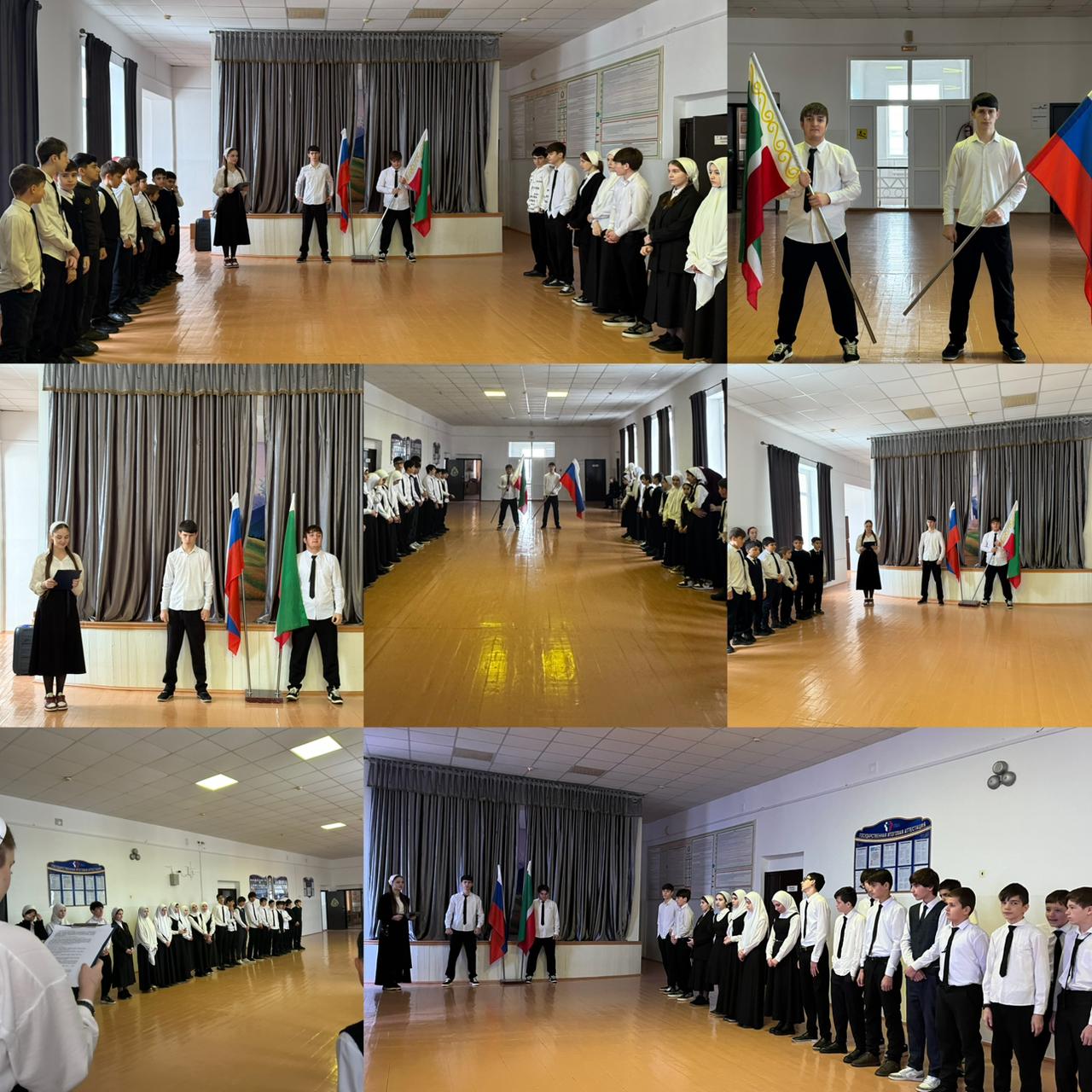 Прошла еженедельная линейка, посвященная церемонии поднятия Государственных флагов Российской Федерации и Чеченской Республики