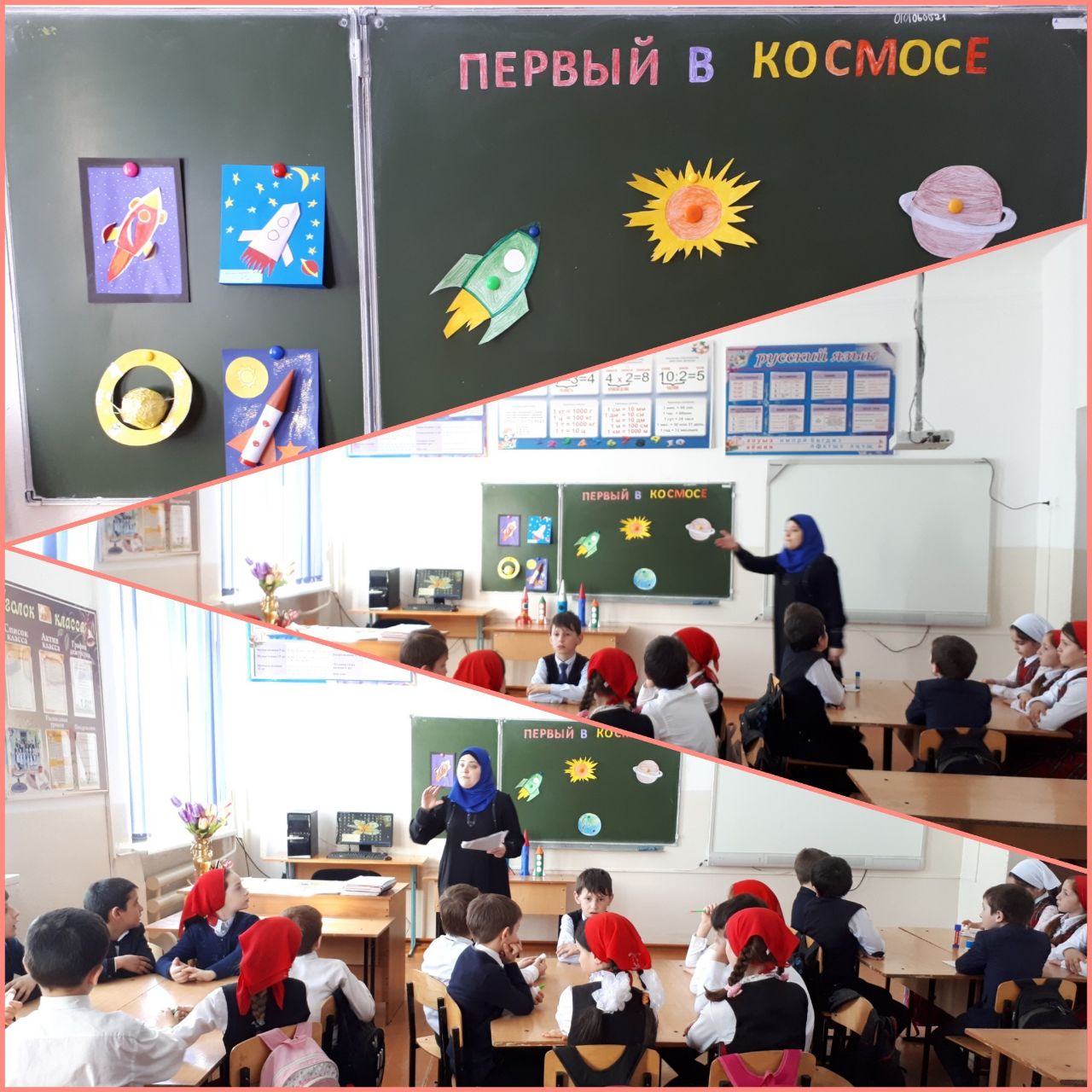 Сегодня в 3 "Б" классе прошёл классный час "Первый в космосе". КЛассный руководитель Гинаева Л.В.