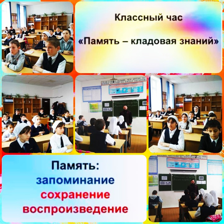 Классный руководитель, педагог-организатор по ДНВиР Хажмурзаев Х. Х. провёл классный час в 5 "Б" классе на тему "Память - кладовая знаний"